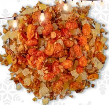 Цукаты, ананасы, кусочки яблока, ягодв облепихи, кусочки имбиря, ароматизатор.